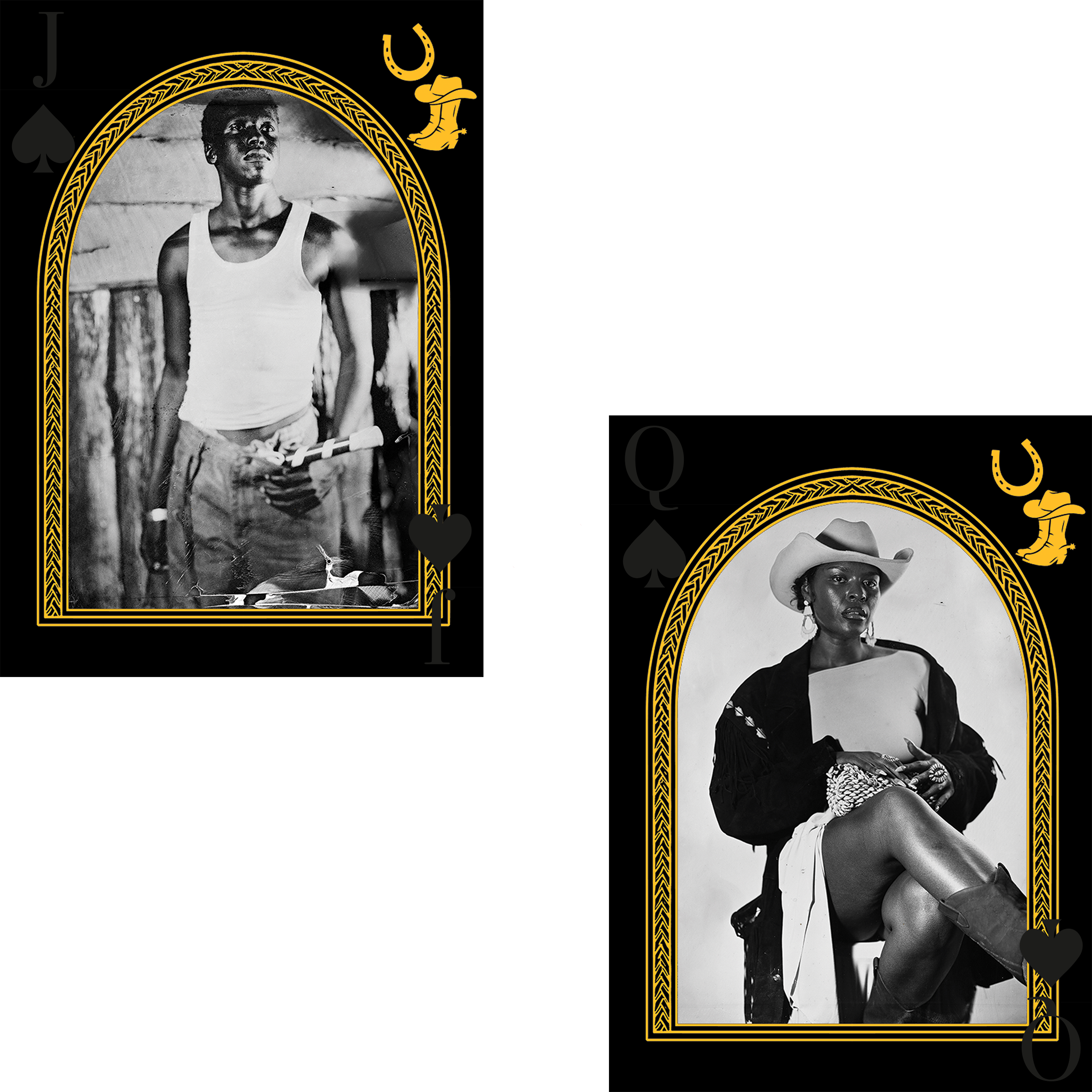 For the past three years the focus of Black Magic has shifted towards paying homage to the legacy of Black American Rodeo culture & our tradition of intergenerational game play. All portraits throughout the 54 card deck were made at Black rodeos around North America.